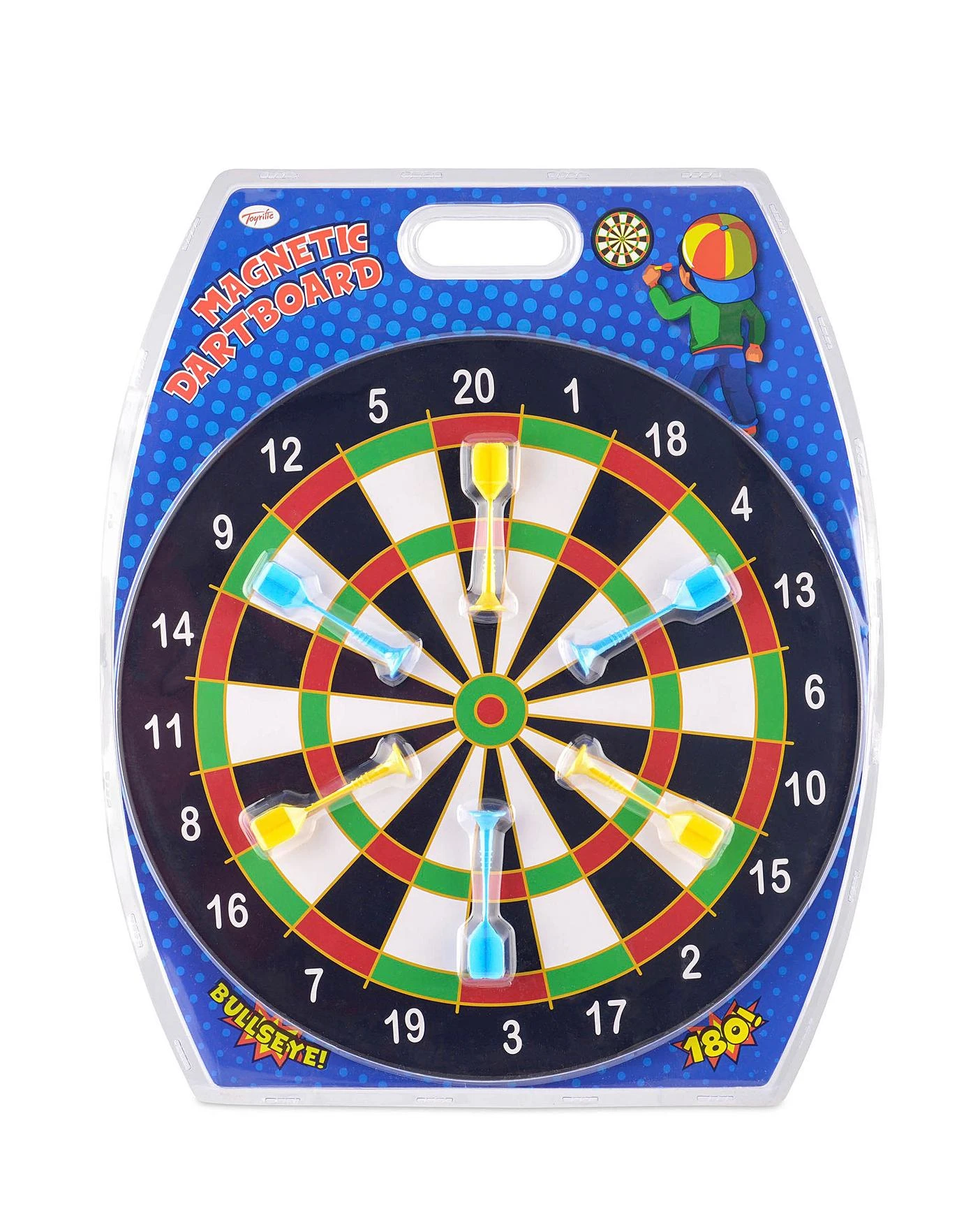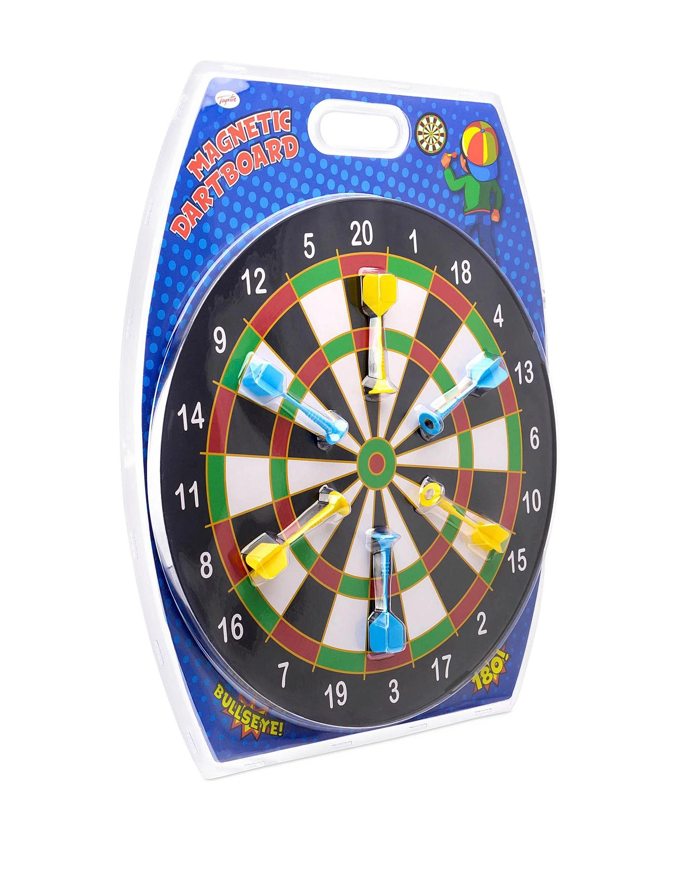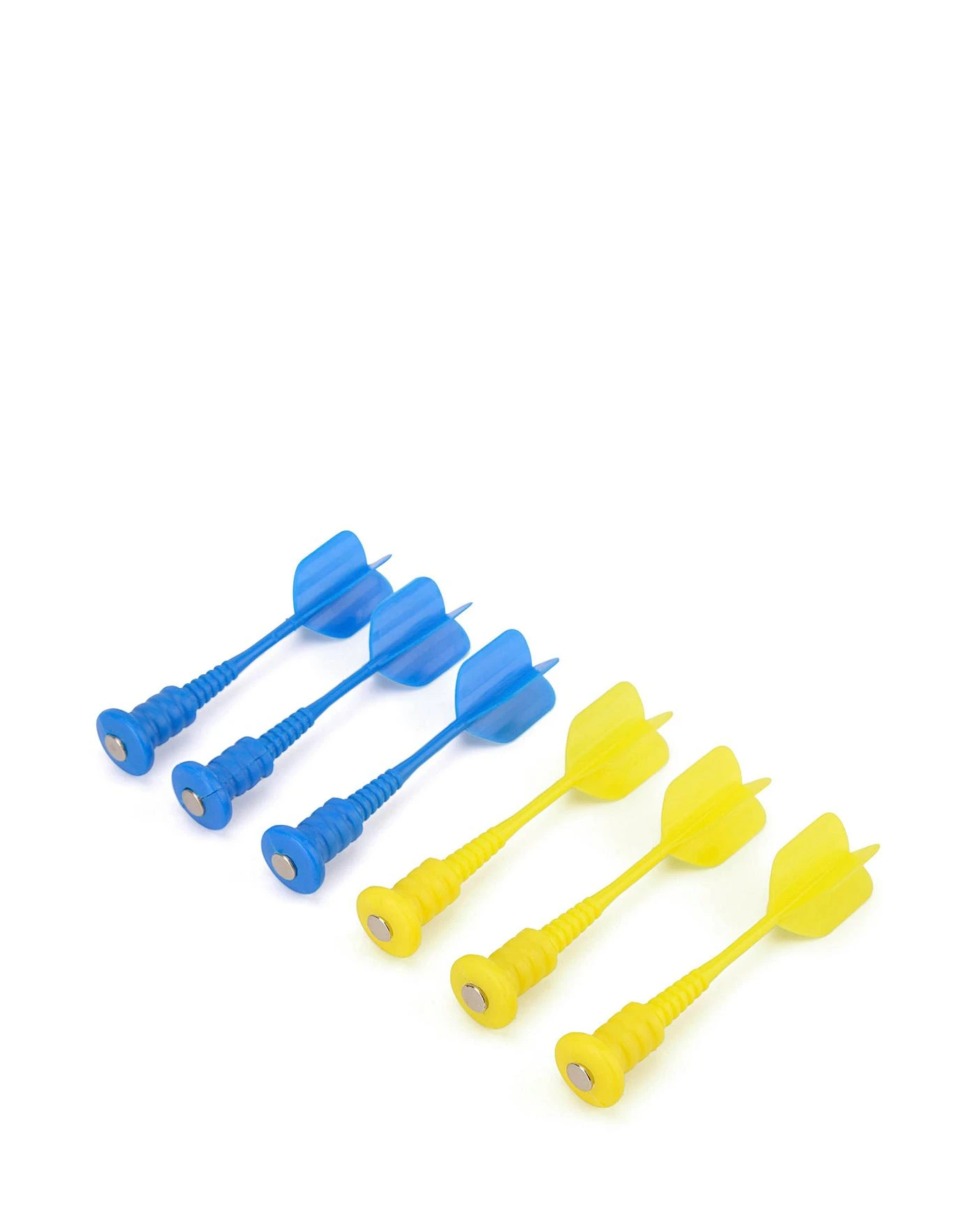 Kids Magnetic Dartboard: for all young darts enthusiasts, learn how to play safely; perfect for both indoor or outdoor use, ages 8+. Develop Skills: In hand eye co-ordination and simple maths, kids can have fun whilst learning. Safe For All Ages: No sharp points, meaning no damage and no accidents; strong magnets attach to the board easily when thrown. Complete Set: Metal dartboard with 6 magnetic tip darts in blue and yellow to play solo or play competitively with friends or family. Ideal Gift: For all ages on Christmas or birthdays; product size 49 x 4 x 42.6 cm.